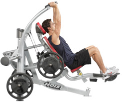 Оборудование RPL-5501 позволяет прорабатывать мышцы груди и рук.