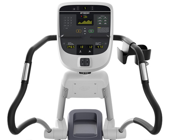 PRECOR EFX 813 оснащен датчиками мониторинга пульса и кардиоприемником. Управление тренажером осуществляется через панель управления.