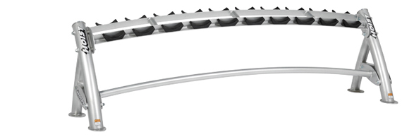 Американская компания Hoist создала подставку CF-3461-1 для хранения гантелей. Грамотно сконструированная конструкция подставки позволяет ее размещать даже в спортивных залах с небольшими размерами.