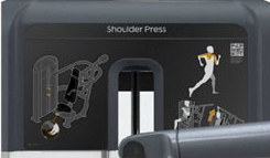 Инструкция На корпусе тренажера имеется информационный плакат с крупными графическими изображениями, наглядно показывающими правильный порядок выполнения упражнений, исходное и конечное положение, а также нагружаемые мышцы. Ссылка на обучающие видео доступна через QR-код. | Корпус и защитные щитки Тренажер с открытым и привлекательным дизайном обеспечивает удобство доступа к регулятору грузового стека и рычагу добавления весов. |
