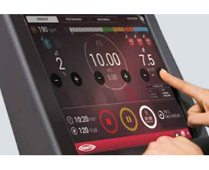 HD дисплей LED, установленный на консоли беговой дорожки имеет диагональ в 15 дюймов и обеспечивает максимальную яркость и четкую видимость всех параметров тренировки. Дисплей характеризуется экономным энергопотреблением и обеспечивает постоянную бесперебойную работу. Кроме того, предусмотрено наличие удобного графического интерфейса и удобного емкостного тач-экрана с возможностью проводить установки и корректировку на основе инновационных систем управления, все это увеличивает опыт пользователей.