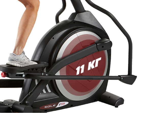 В конструкции эллиптического тренажера используется маховик с инерционным весом 11 кг, за счет которого обеспечивается максимально плавные и комфортные движения. Благодаря этому эллиптические тренажеры Sole Fitness можно поставить в один ряд с коммерческими эллипсоидами.