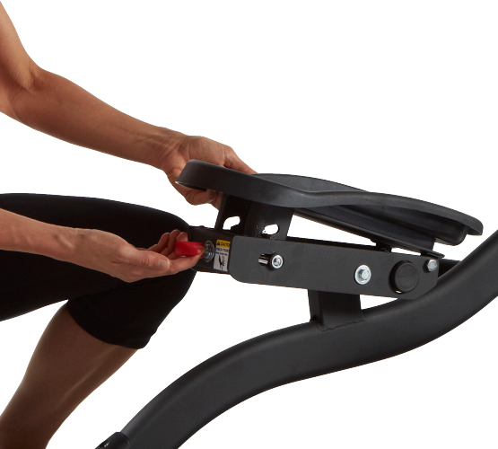 За счет запатентованной технологии отрицательного внутреннего угла педалей, который составляет -2°, снижается нагрузка на колени и голеностопные суставы, что делает тренировки максимально безопасными.