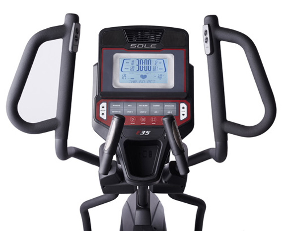Эллиптический тренажер Sole E35 имеет подвижные рукоятки, благодаря которым в работу включаются руки, что позволяет прорабатывать мышечные группы верхнего плечевого пояса и самих рук, то есть происходит комплексная тренировка всего тела. Подвижные поручни имеют мультипозиционные рукоятки с широкой зоной хвата, которые позволяют максимально удобное положение рук.