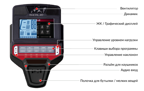 В оснащение беговой дорожки входит тренировочная консоль с информативным ЖК-дисплеем, который имеет высокое разрешение. Дисплей с интуитивно понятным интерфейсом имеет мягкую голубую подсветку. Он позволяет удобно управлять тренировочным процессом и отслеживать все тренировочные параметры, которые отображаются на нем максимально информативно.